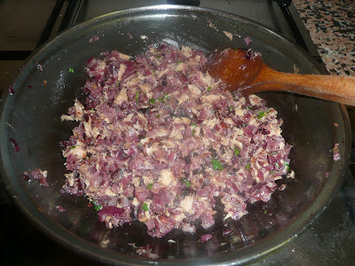 Añadimos el atún y la patata que hemos triturado. Cocinamos un poquito.
